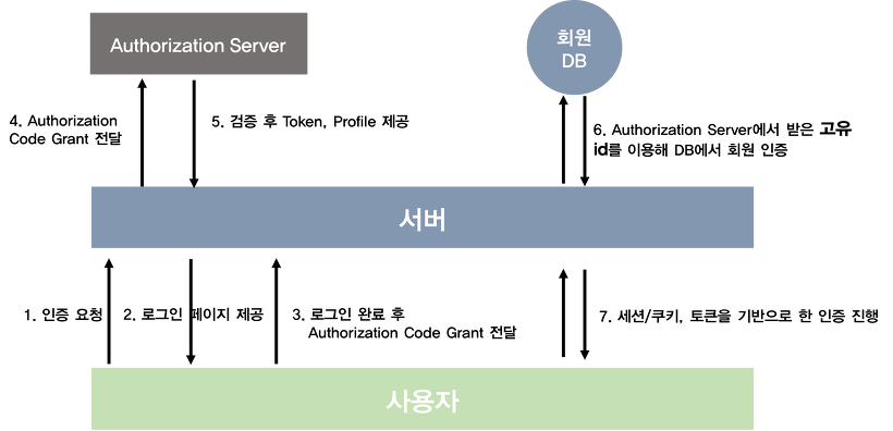 소셜 로그인 인증 과정은 다음과 같습니다.