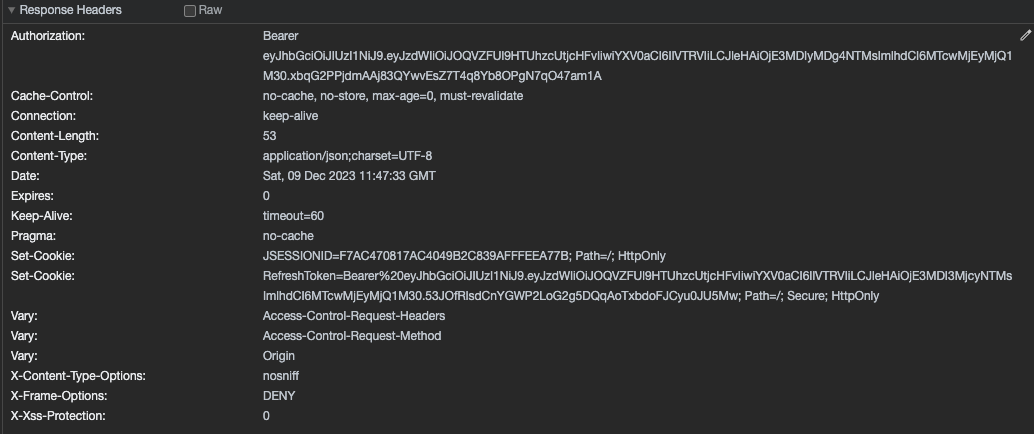 jwtProvider.setTokenResponse(tokenDto, response);