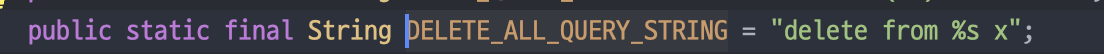 쿼리를 실행하기전에 DELETE\_ALL\_QUERY\_STRING 을 통해 바인딩을 해주고있다. 해당 부분을 살펴보자