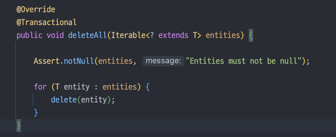 deleteAll 내부를 보니 다음과 같이 구현되어있다.