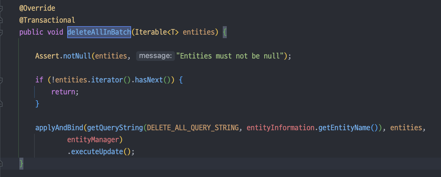 deleteAll 내부를 보니 다음과 같이 구현되어있다.