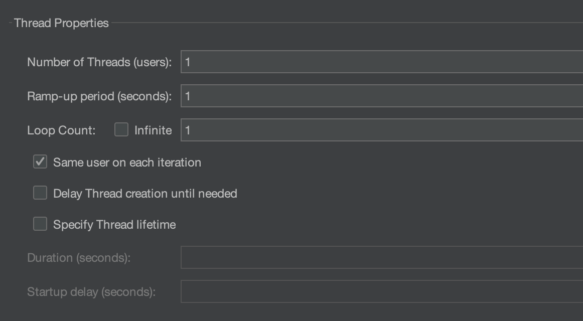 - Ramp-up period (seconds) : 동시에 모든 사용자가 접속하는 시간 (한번의 실행을 몇초동안 완료시킬 것인지 나타내는 값)