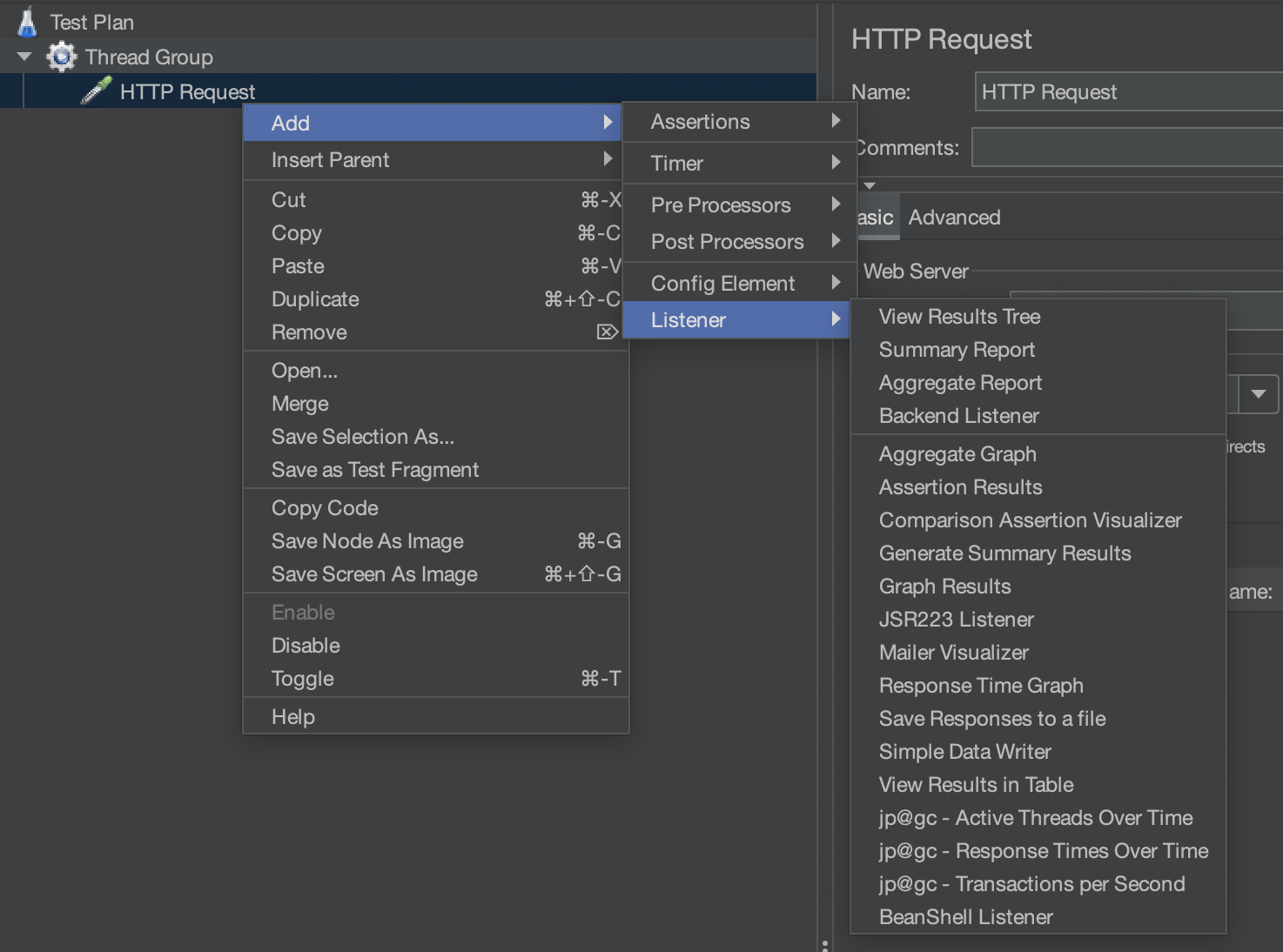 Summery, View Results Tree, Graph Result를 많이 쓰는 것 같습니다.