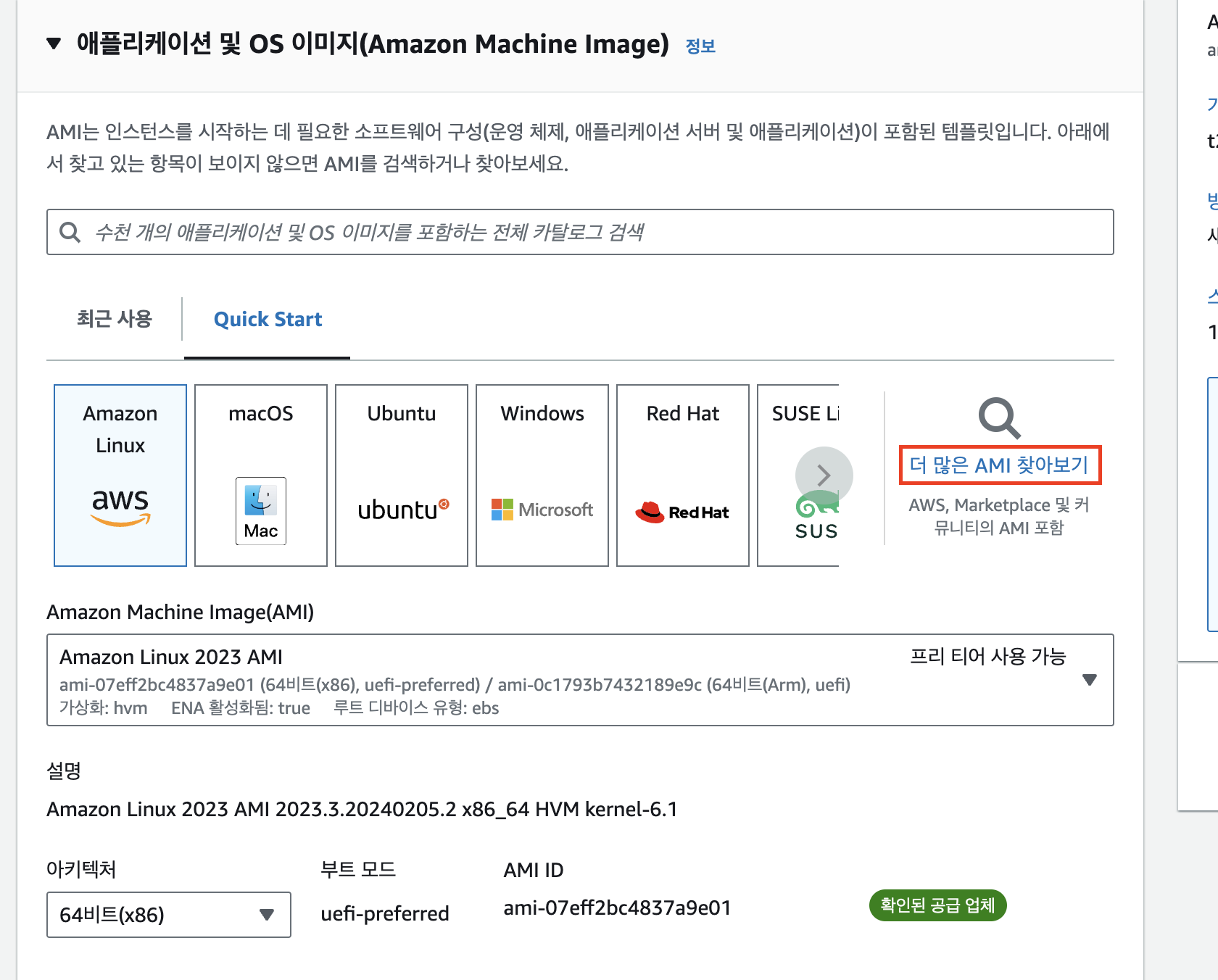 EC2 시작하기에서 더 많은 AMI 찾아보기 클릭
