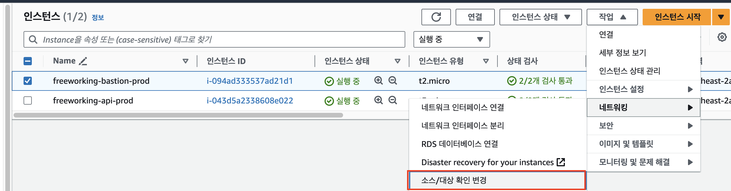 5. 인스턴스 소스/대상 확인변경 중지 체크